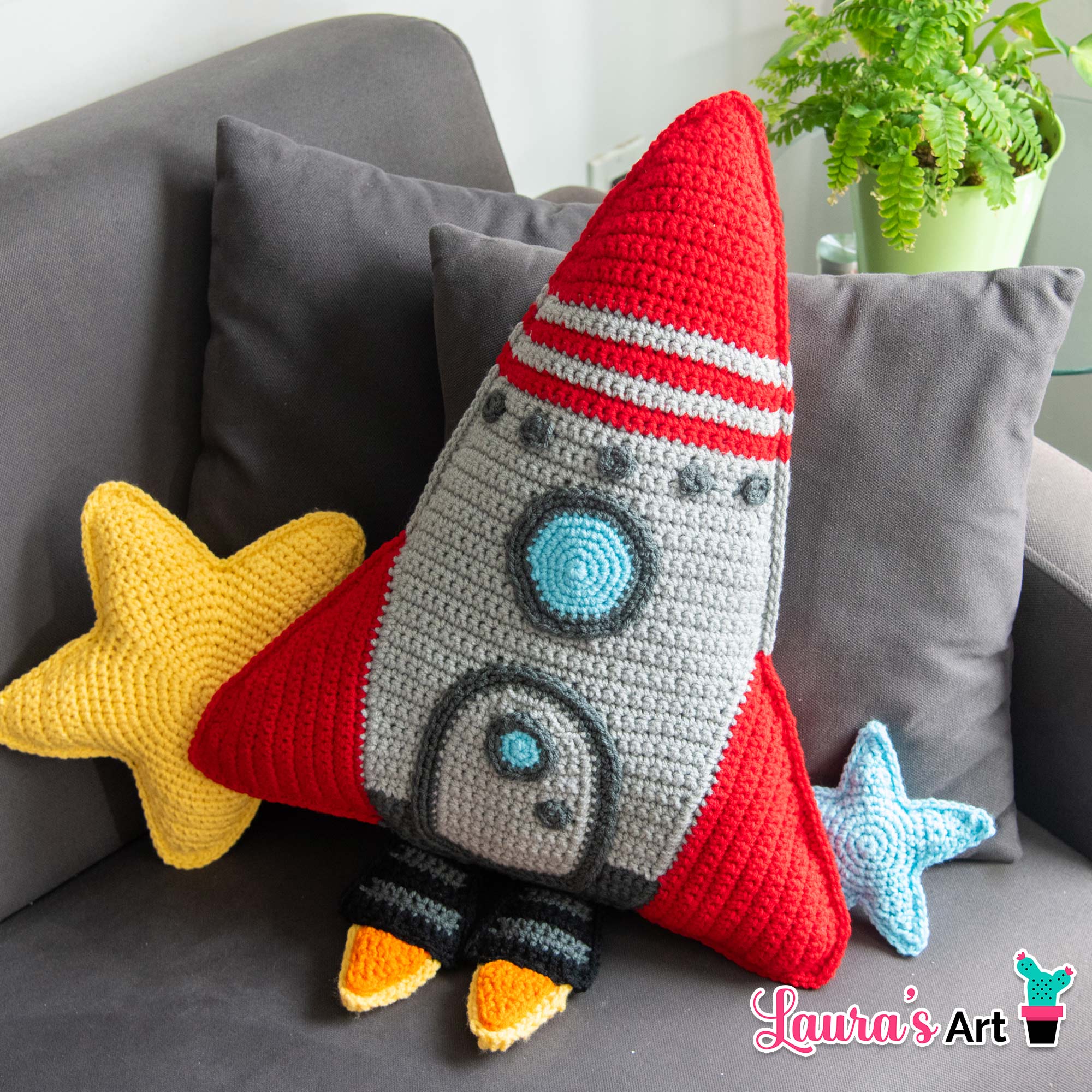 Create your own adorable Crochet Rocket Pillow with this easy-to-follow step-by-step PDF pattern!