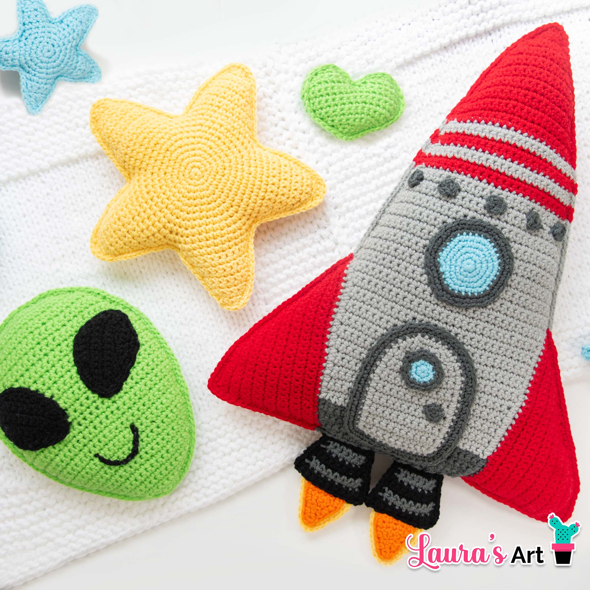 ¡Crea tu propia y adorable Almohada Cohete a Crochet con este patrón PDF paso a paso, fácil de seguir!