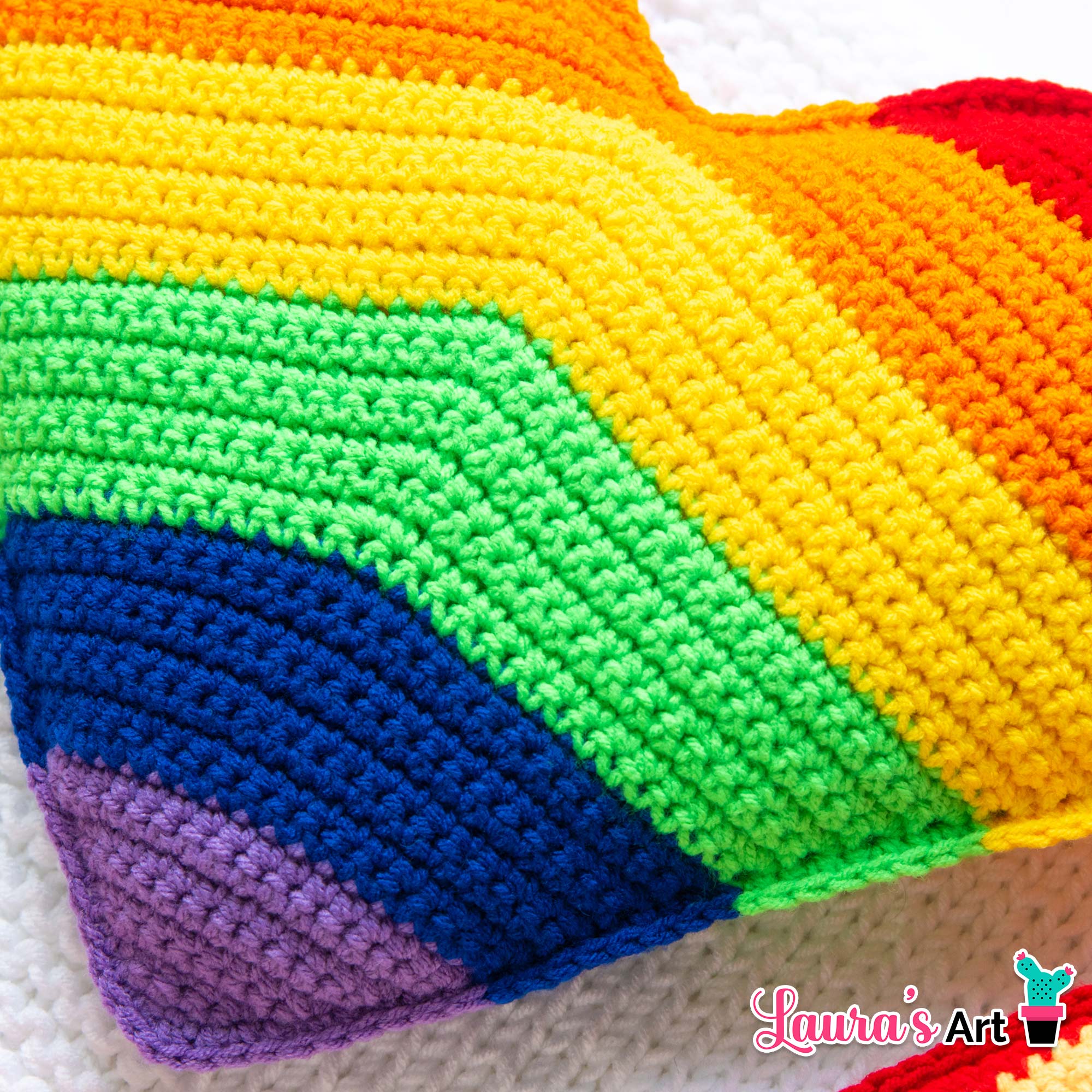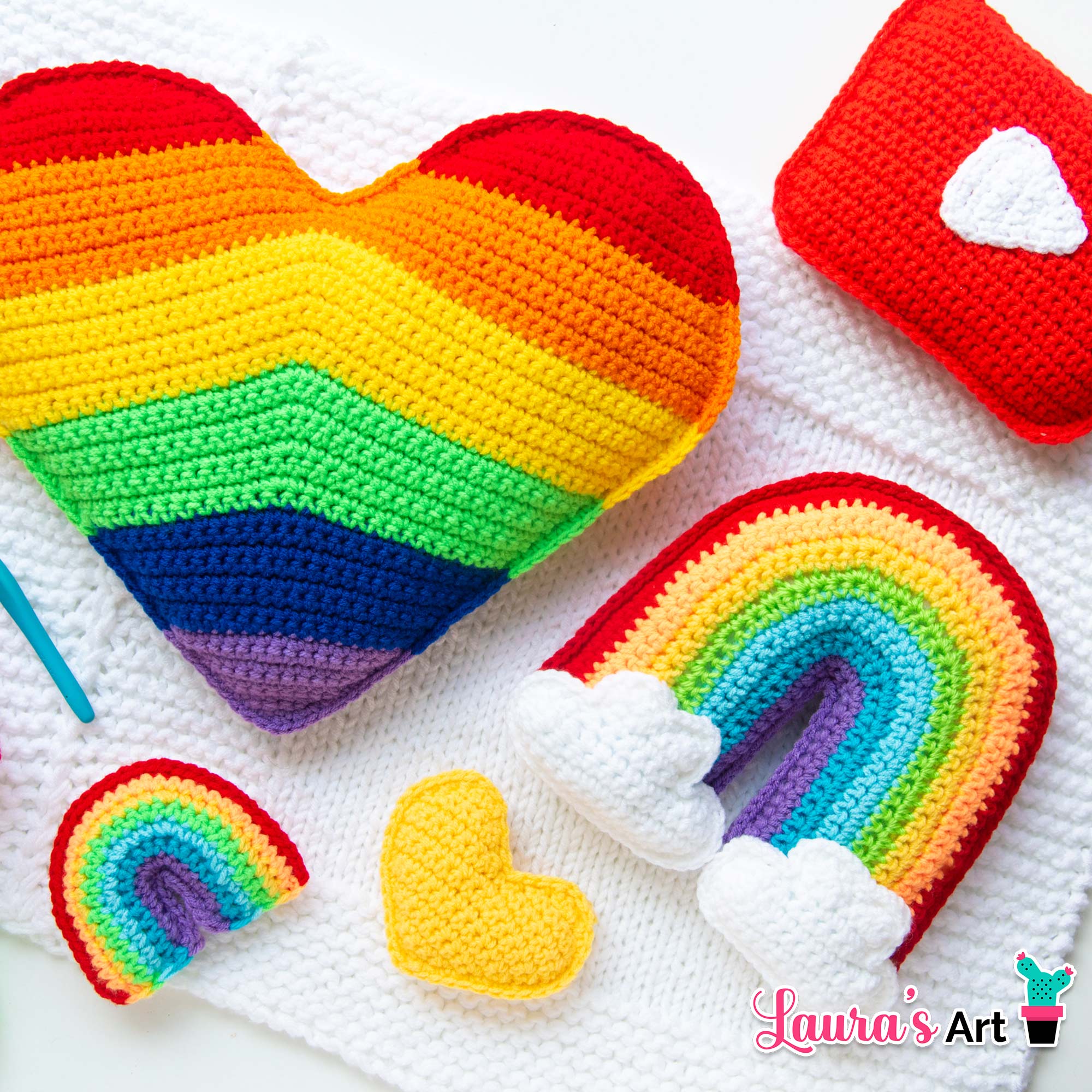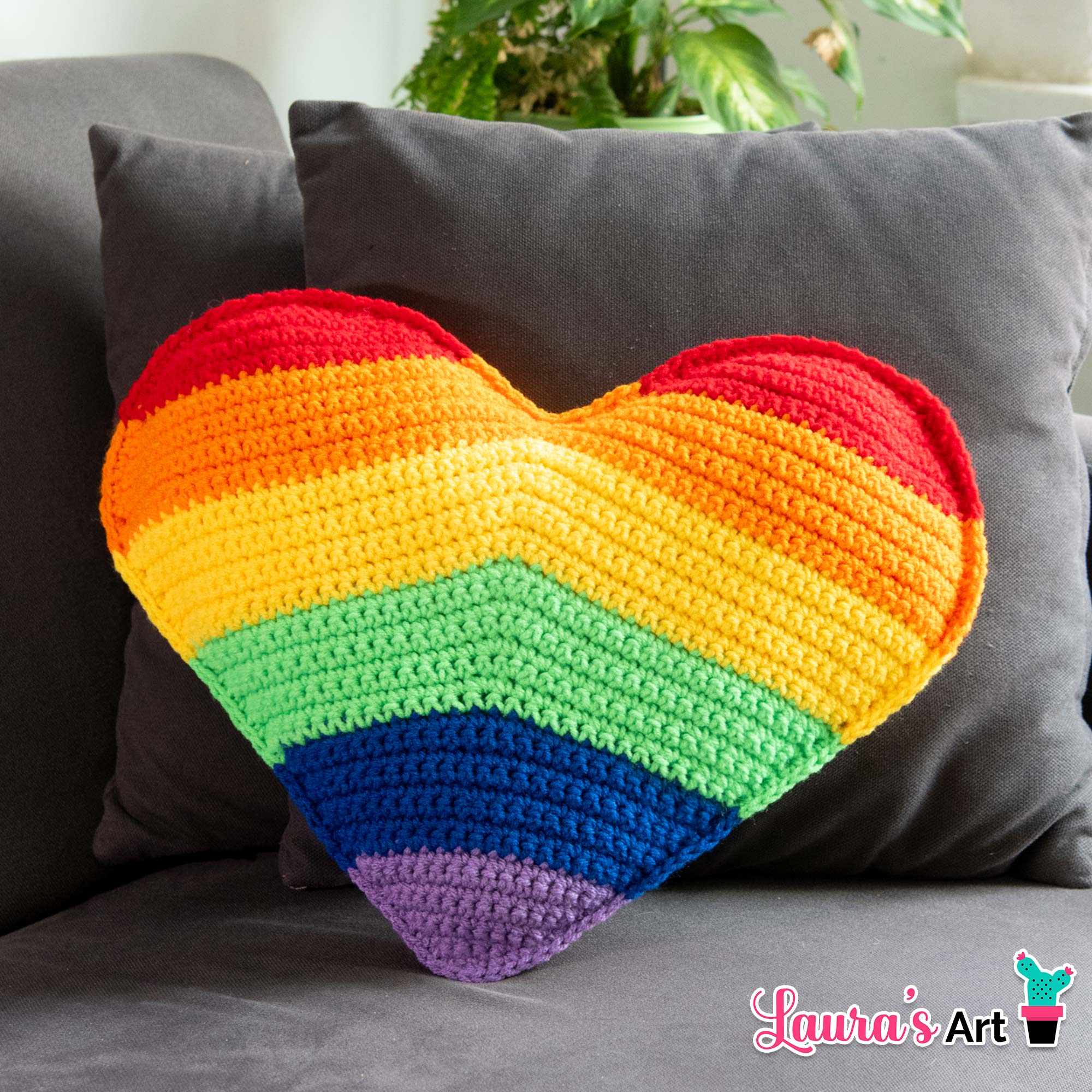 Unleash your creativity and bring a burst of color to your crochet projects with this charming Rainbow Heart Pillow Pattern!